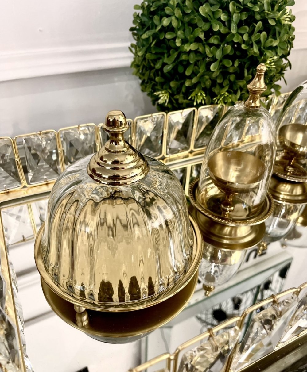 Złota mała patera z kloszem na cytrynke